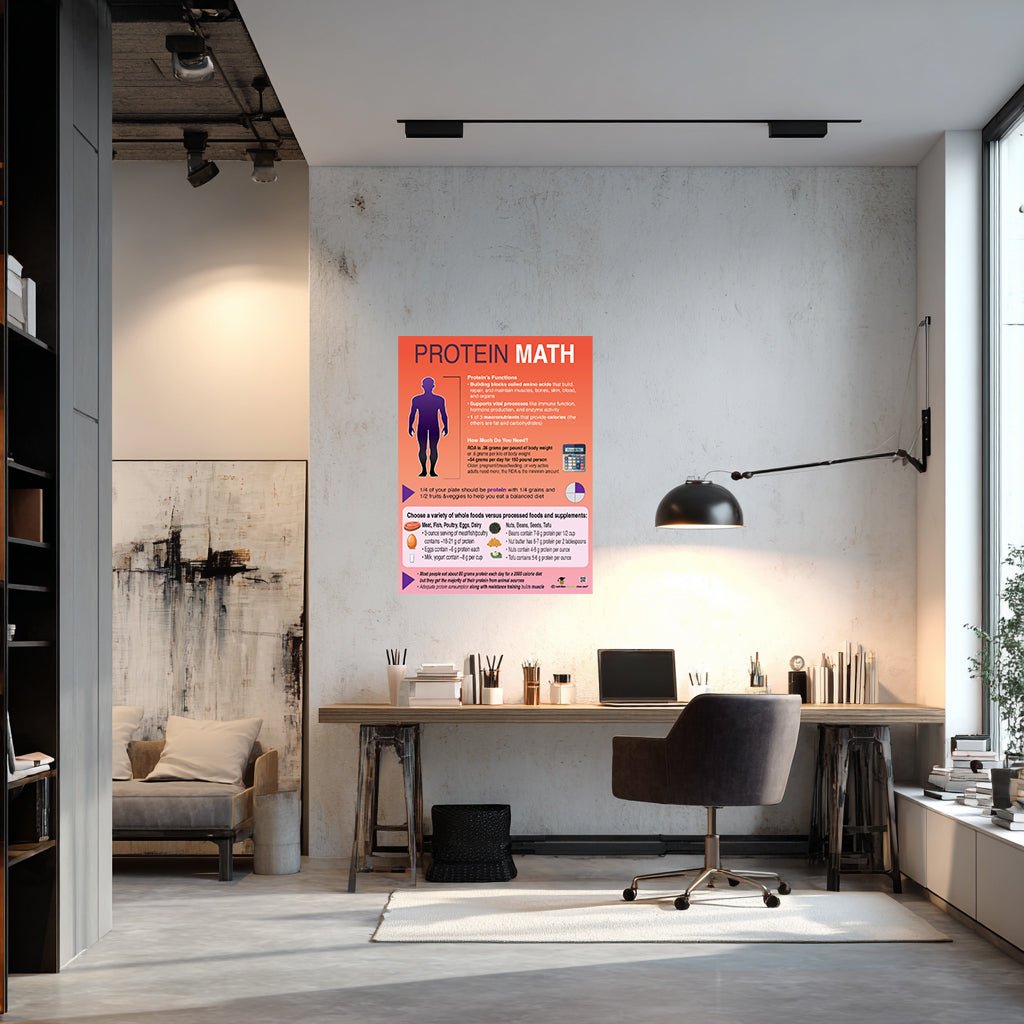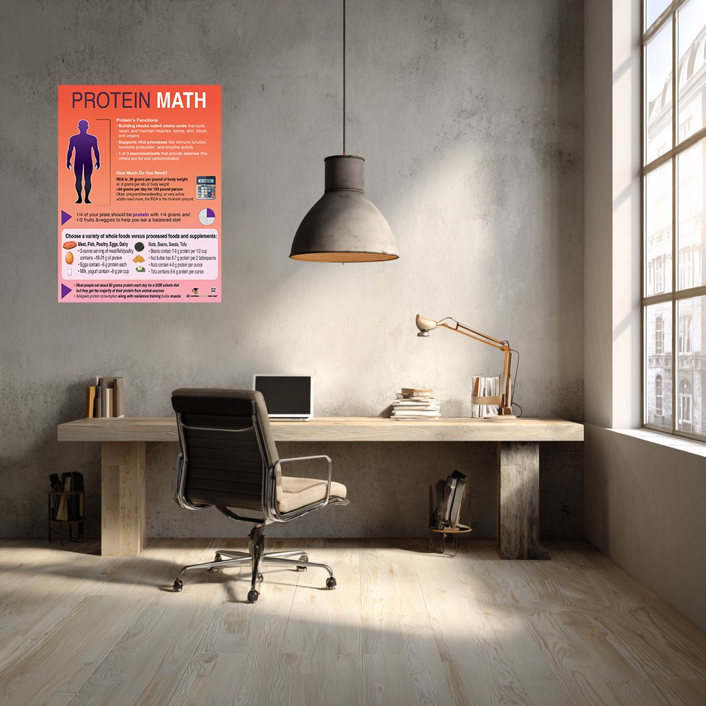The Protein Math Poster is a visual guide that makes understanding dietary protein practical and straightforward.